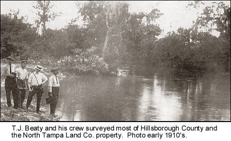 T. J. Beaty, the county surveyor, was put in charge of surveying the entire property. The property would have an East and West plat, with the Tampa Northern railroad being the dividing line. Help came from Bert Frizzell, son of pioneers Marcus and Amanda Frizzell who had arrived there in the late 1800's. E. D. Hobbs, for whom Lake Hobbs is named, was the manager of the company's Tampa office. A. H. Chapman was in charge of sales, J. E. Martin was the on-site salesman and lived in Stemper.