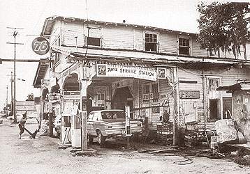 The Dixie Service Station was a combination garage, gas station and gossip haven. Anyone wanting to catch up on what was happening in Lutz needed only to come in, grab a soft drink from the box, and pull up a wooden crate, sit down and keep their ears open. The building was torn down in 1973. |