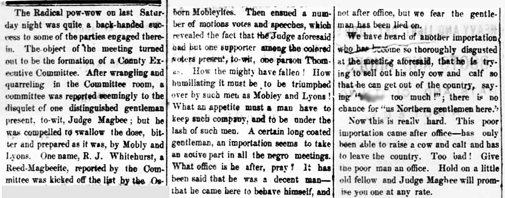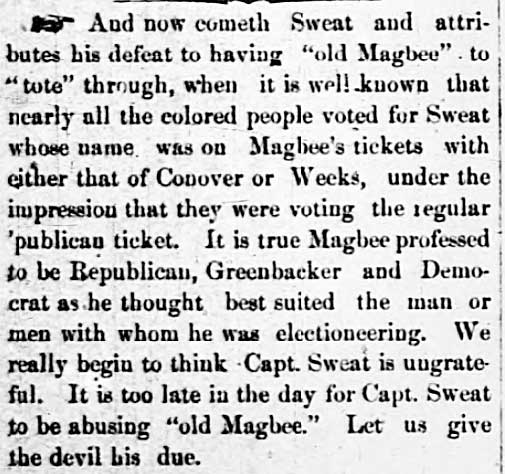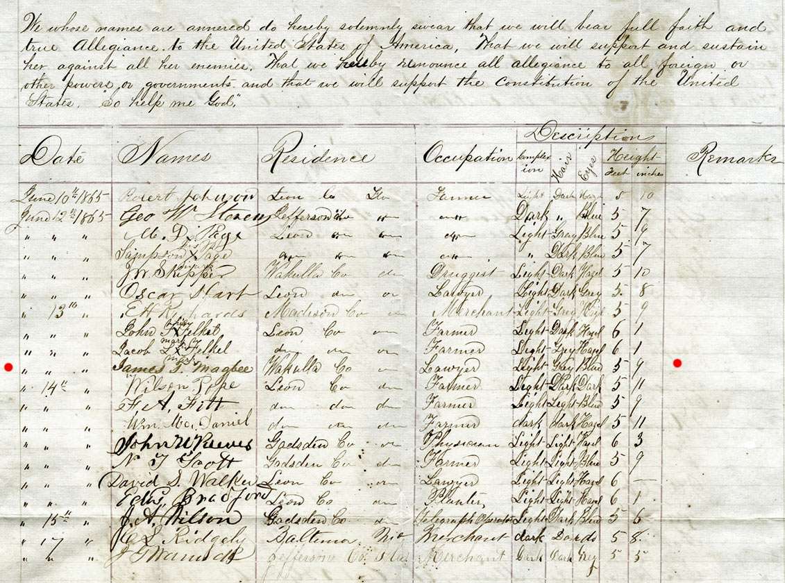 When the Civil War was over, Magbee signed an oath of allegiance to the