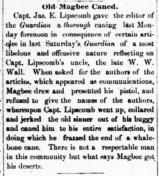In 1862, Magbee's