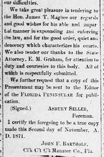word arrived in South Florida, James D. Green of Manatee County