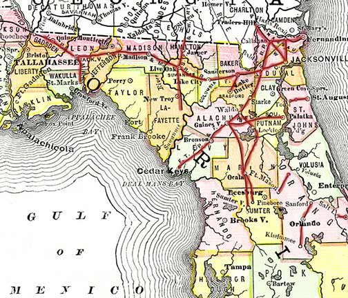 moved with his newly wed bride, his 2nd wife, Julia A. Henderson, to Wakulla County (located on the south border of Leon