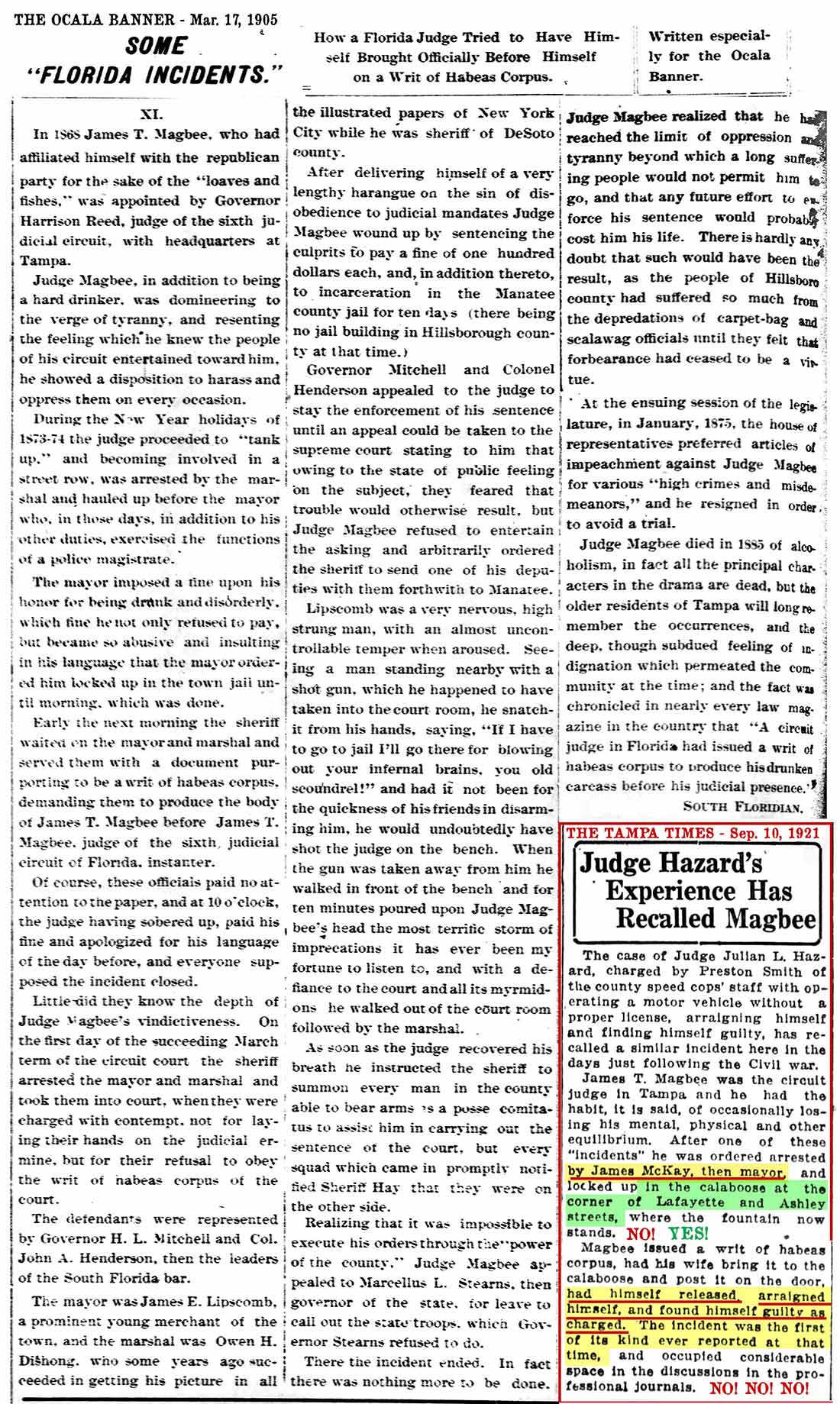 - History of Tampa in the Olden Days" Dec. 18,