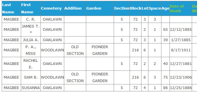 & Elizabeth Laramie Dunham- Grave site of the Magbee family.