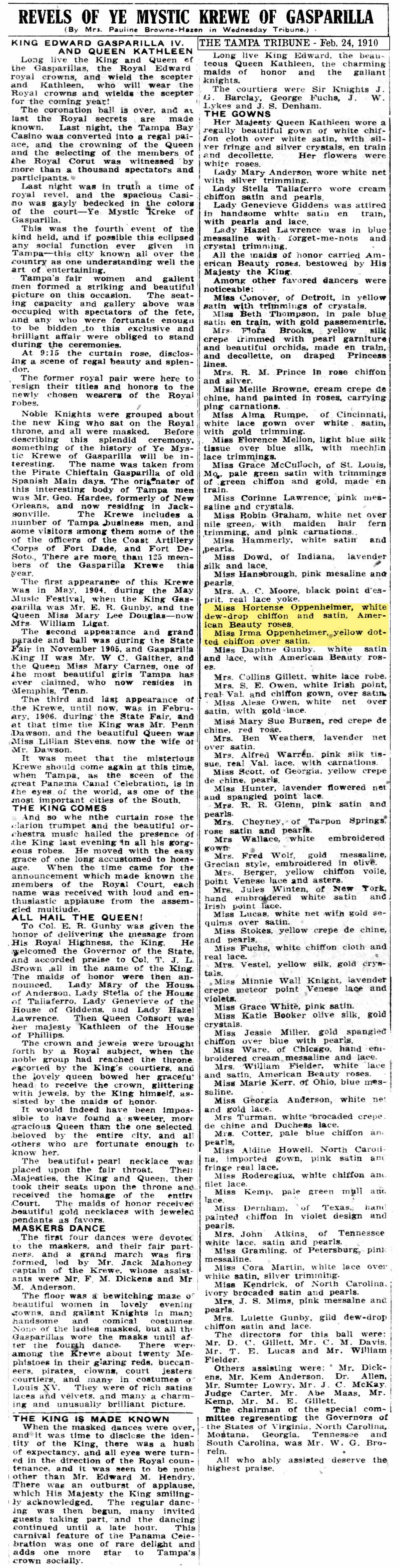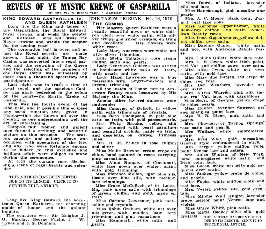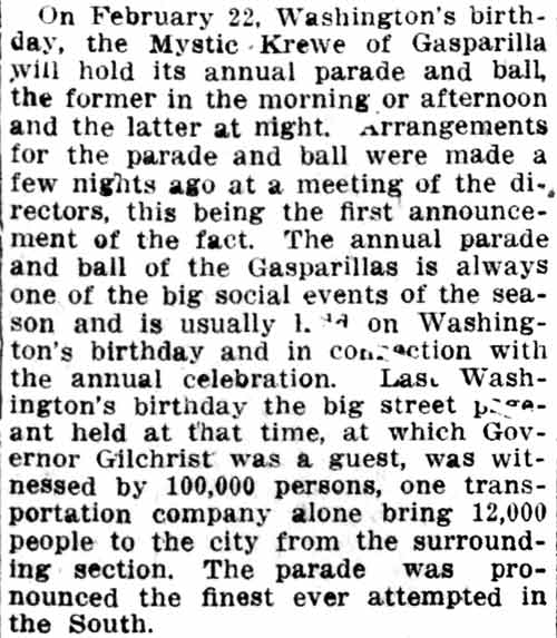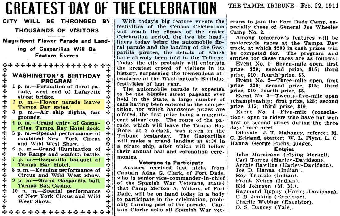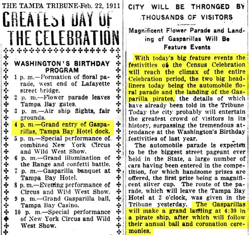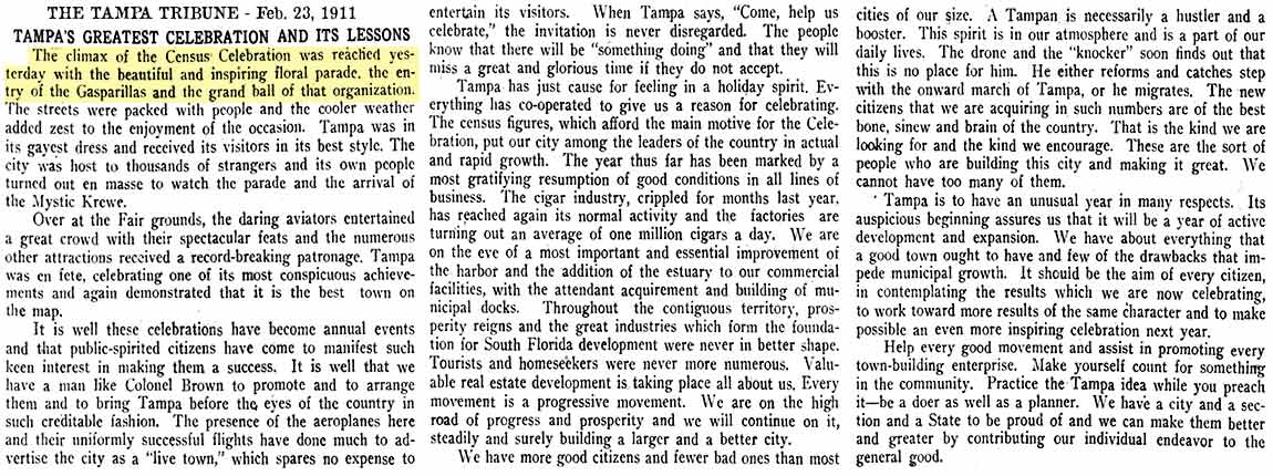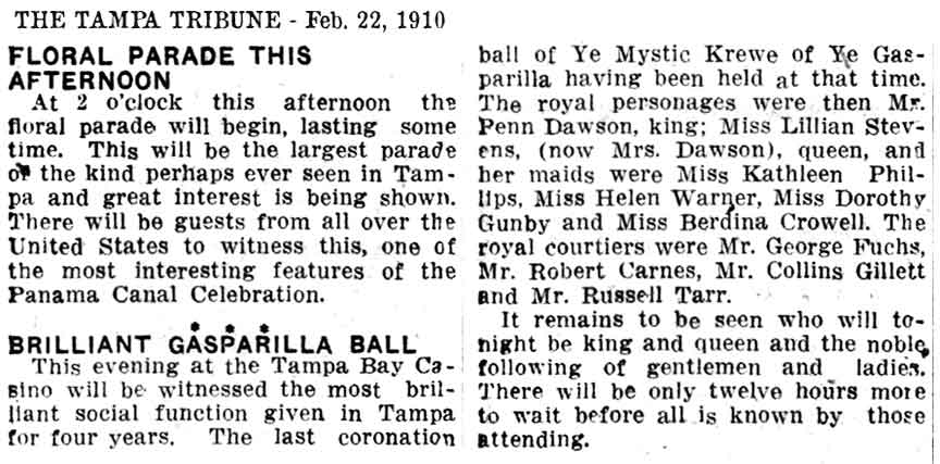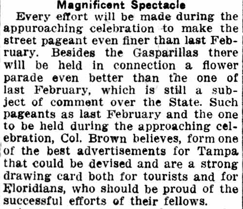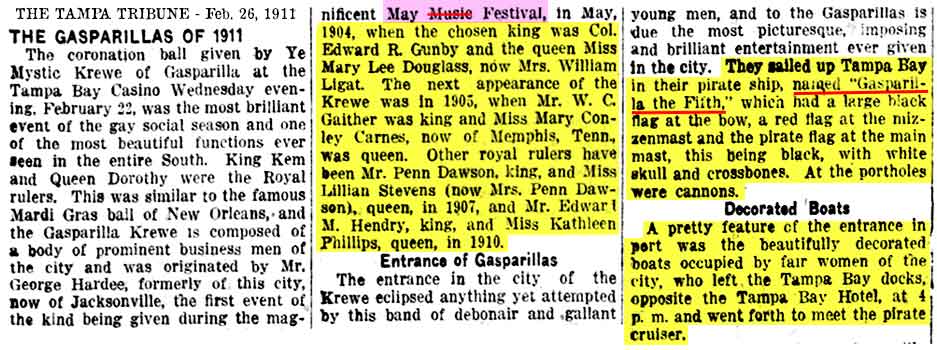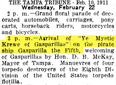 Gasparilla having been held at that time." The article goes on