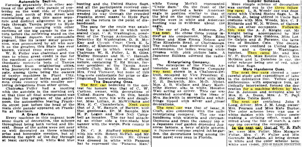 every float, every car, was described. Below is