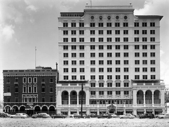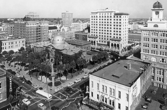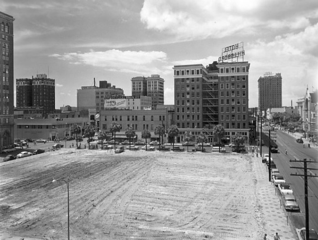 1953 - A view from the former courthouse site of the Elks Lodge building and Tampa Terrace Hotel