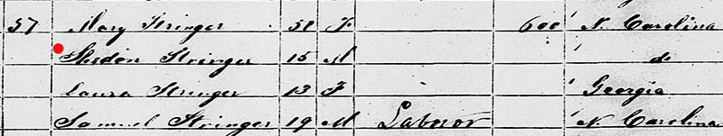 SHELDON STRINGER ON THE 1850 CENSUS