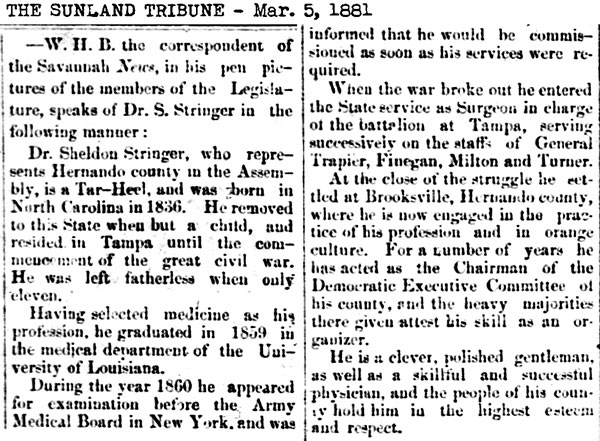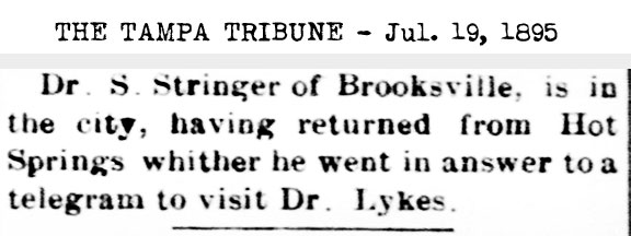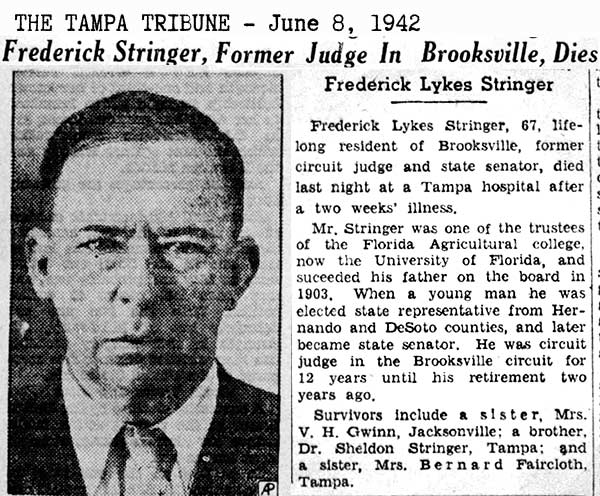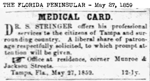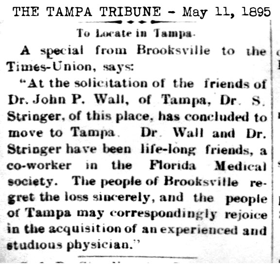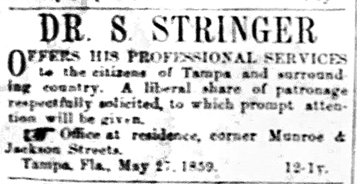 to 1836. His son, Dr. Stringer Jr., was born in Brooksville on June