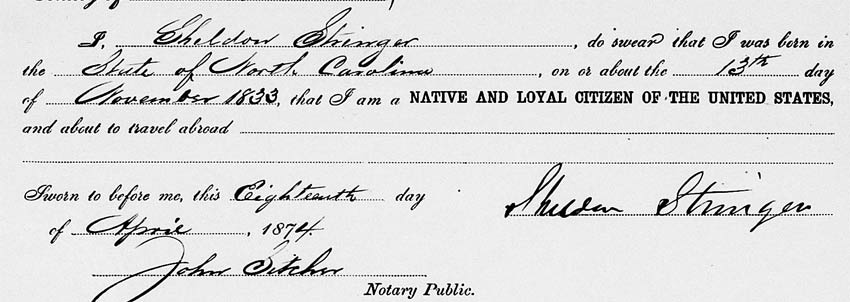 Sheldon Stringer...was born in N. Carolina in 1836. He