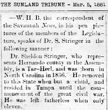 The earliest record found so far of Sheldon Stringer in Tampa was on the