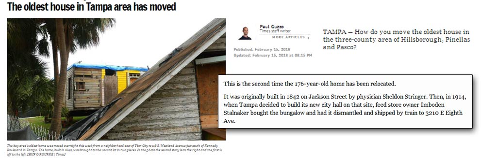 Oldest House in Tampa Area Has Moved," by Paul Guzzo. THE TAMPA BAY TIMES
