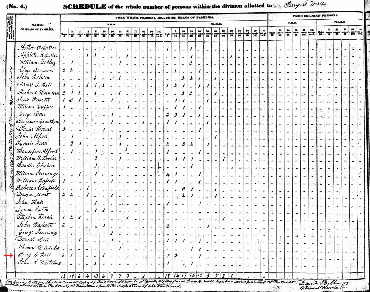 1840 Census of Hamilton County, Florida Territory - Enumerated by Perry G. Wall