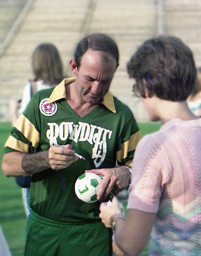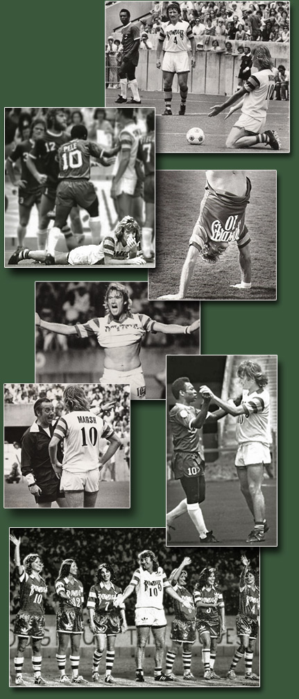 Video: A great series of plays by Marsh in 1976 with teammates George Best & Bobby Moore at Fulham. Starting at the 1:10 minute mark of the video, a near goal by Marsh, then 2 great goals. Video: Rodney Marsh goals from his English league days Aug. 24, 1979 Article after winning American Conf. Championship: A Fitting Show for Broadway