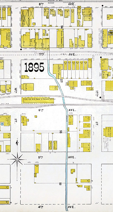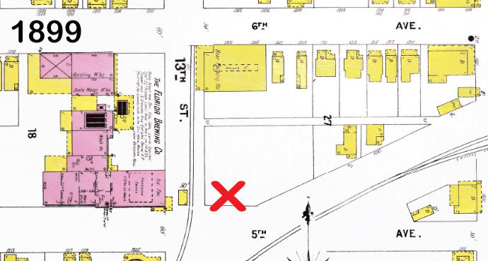 A historical marker formerly located near 5th Avenue and 13th