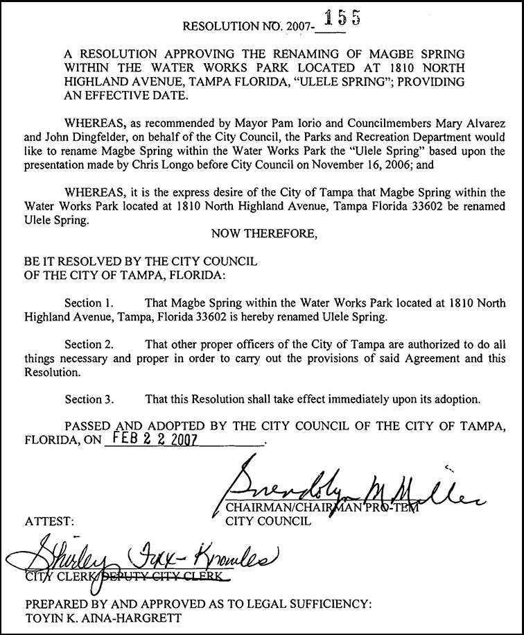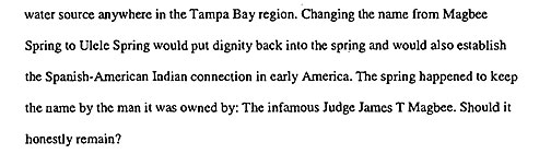 approved. Ulele Spring, formerly called Magbee Spring, was