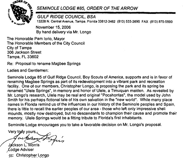 Tampa area) to the large spring at the present site of Fifth