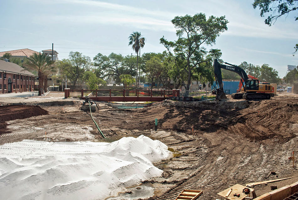 Construction on the new spring basin, April 2014