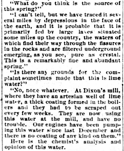 tests showed the spring water to be the purest and healthiest in