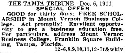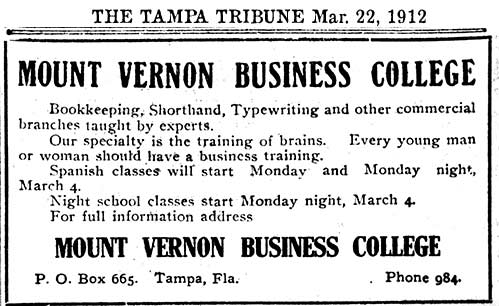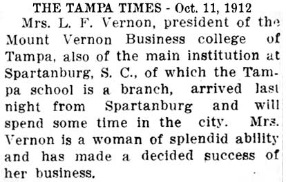 | Mrs. Vernon's Tampa school was a branch of the main one located in Spartanburg, SC. It appears she made trips quite often to both schoools. |