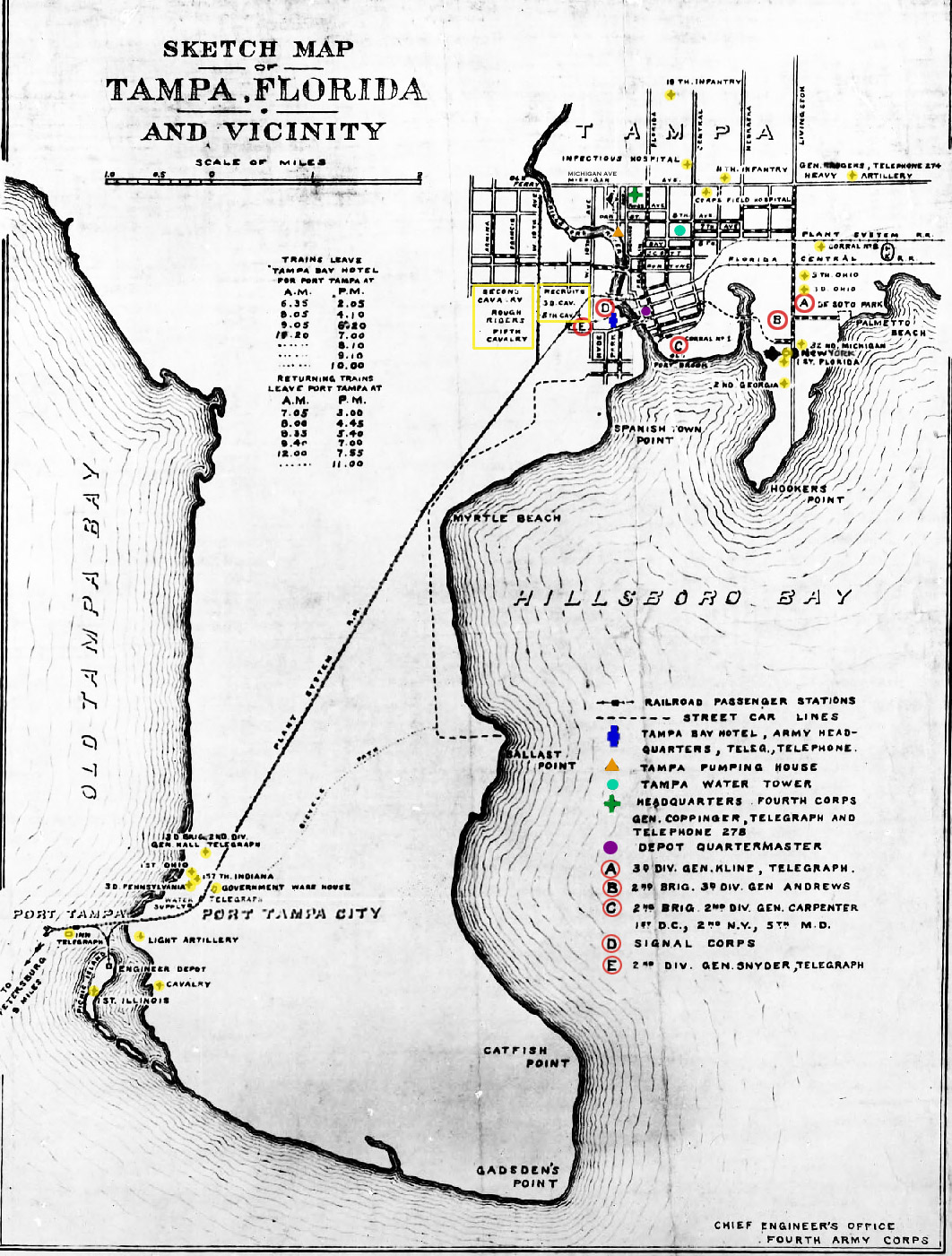 Locations of Military-Related Sites in Tampa during the Spanish-American War of 1898 Color has been added in order to make the sites more easily seen. See the Key at lower right.