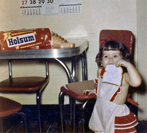 A Tampa girl enjoying a slice of delicious Holsum bread in 1954