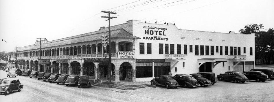The hotel was situated near the "miraculous" mineral waters of Hillsborough River and represents an excellent example of a resort recreation facility of early 20th century. The most distinguishing feature of the hotel was its first and second floor front arcade in classical style. Josiah T. Richardson was the original owner of the property. In the late 1920s Richardson defaulted and the building was sold to South Carolina tobacco grower J.F. Hendrick. At his death the property passed to his five grandchildren. As estate holders, they exerted control over leases for the ground floor stores. In order to bring in new businesses, they refused lease renewals for many of the original shops.