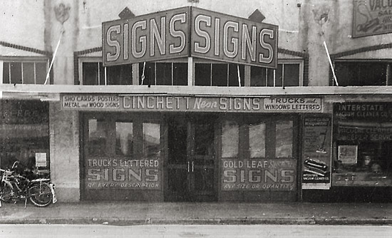 Cinchett Neon Signs did what no other sign company did in its day.  They offered Tampa business owners the opportunity to pay for their signs in installments.  Many proprietors practically put their last penny into starting their business; leasing or buying a shop, maintaining an inventory, and paying employees, left very little for a beautiful, flashy neon sign which they needed to attract the customer's attention.  Thanks to Frank and son John F. Cinchett, shop owners were able to afford the best in neon and build a future for themselves and their families, keep their businesses operating, and in many instances become a Tampa landmark.