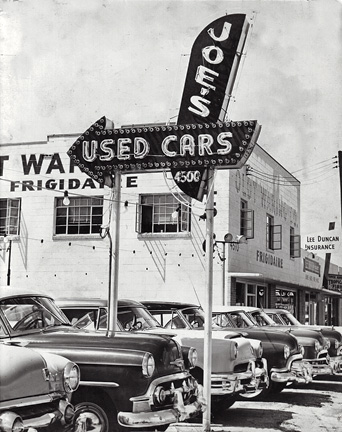 The building behind Joe's sign housed the Oldt Waring Company, Lee Duncan Insurance and a tropical fish shop.