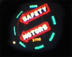 Note Allied Linoleum in the background, another Cinchett creation.  The vertical "Linoleum" section is a giant neon carpet roll.