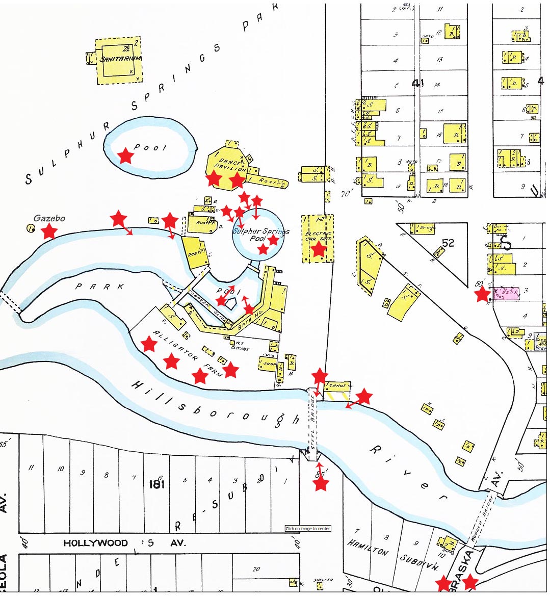 Sulphur Springs resort area from a 1922 fire insurance map of Tampa - Scroll up/down & left/right to view entire image.