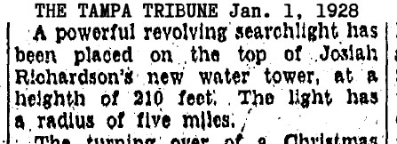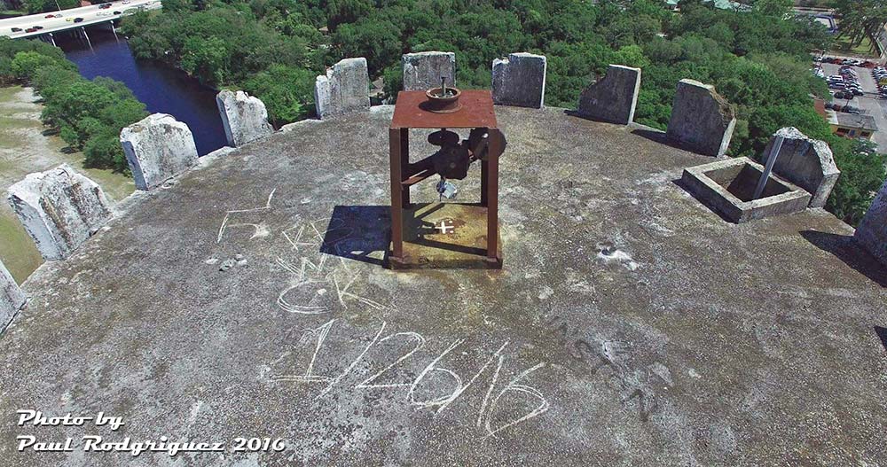 In the drone photo below, the safety ladder access to the roof can be seen at right. The rusting structure in the center was the mechanism that turned a searchlight that was put into operation in late 1927 sometime between September and December.
