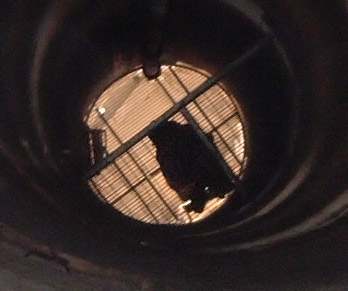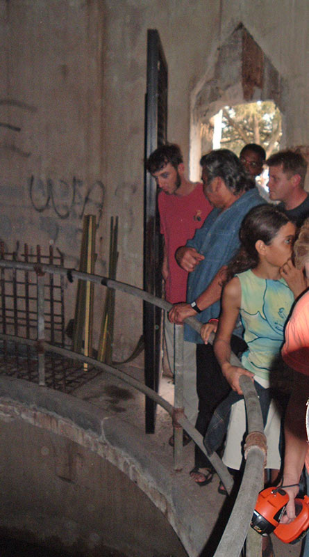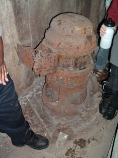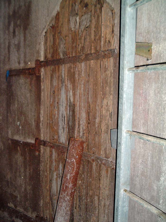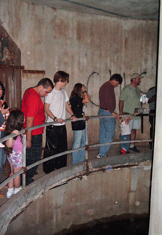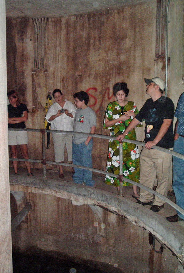 Dozens of Tampa residents who for years wondered what the inside of the tower looks like, peered curiously up the inside of the central core. Click on the light at the end of the tunnel to see close up. Below you can see one of the old wooden entry doors that was sealed on the outside .