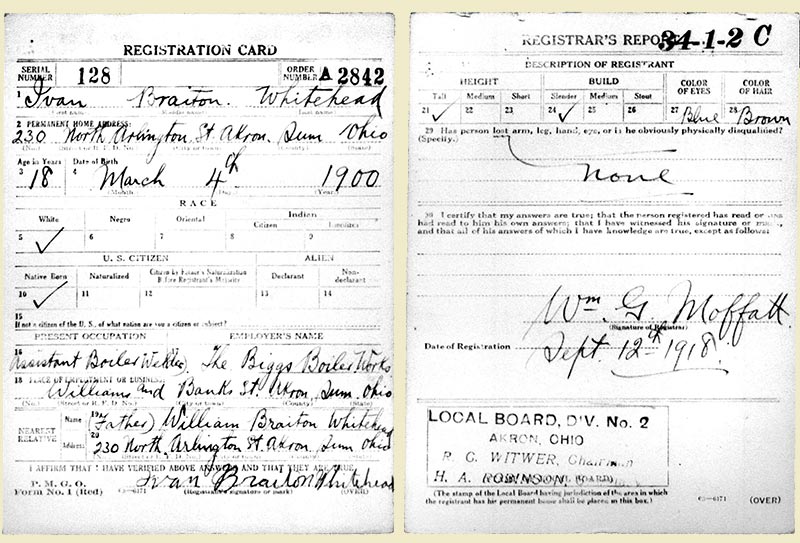 YVONNE'S HERITAGE Please note that the family info below is the result of online records searches. Marriage records and especially census records sometimes contain errors, especially with ages. Every effort has been made to compare these with the little bit I knew and was provided with about Yvonne's family. Images of the census records may be added later. --Dan Yvonne's paternal grandfather, William Braiton Whitehead, was born in 1869 Ohio, of parents from New Jersey (father) and Ohio (mother.) William married Cora Dallas on Aug. 2, 1891 in Akron,Ohio. Cora was born May 12, 1871 in Salem Township, Tuscawaras Co, Ohio. She was a daughter of James W. Dallas and Catharine G. Cragham; both were Ohio natives. On April 30, 1896, while William & Cora were living at 205½ Poplar in Akron, they had a son, William E. Whitehead. The Whiteheads were living at the same address on Mar. 4, 1900, when their son (Yvonne's father) Ivan Braiton Whitehead was born. By 1910, William B. Whitehead and his wife Cora had moved to Jacksonville, Fla. where William worked as an iron molder, probably at the shipyards. Also with them there was their son, Ivan B. Whitehead who was 10. Their other son, William E. would have been 14 at that time, it's not yet known why he wasn't listed on their 1910 census. On Sept. 12, 1918, Yvonne's father, Ivan, registered for the WW1 draft in Akron. His registration shows he was tall and slender, with blue eyes and brown hair. At the time he lived with his parents at 230 N. Arlington St in Akron. Ivan was employed at the Biggs Boiler Works located at Williams & Banks Streets in Akron, where he was an assistant boiler welder.